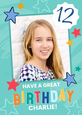Studio Sundae Blue Paint and Stars Photo Upload Birthday Age Card