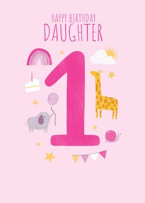 1st Daughter's Birthday Cute Icon Illustrations Card