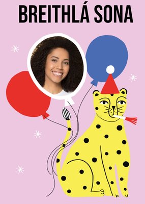 Cute Illustration of Leopard Photo Upload Birthday Card
