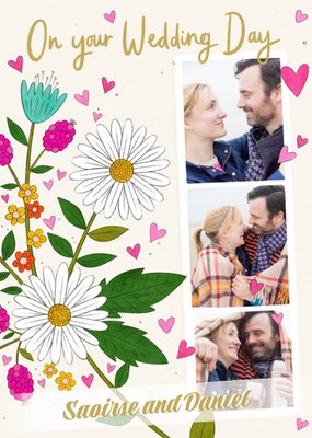 Damien Barlow Cute Illustrated Wild Flowers Photo Upload Wedding Day Card