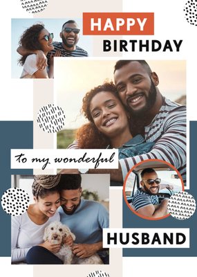 Photo Collage With Geometric Shapes Husband's Photo Upload Birthday Card