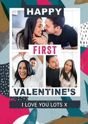 Graphic Tropical Happy First Valentine's Photo Upload Card