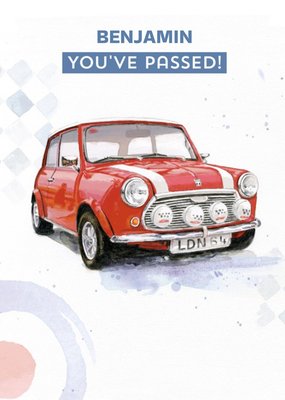 GUK Watercolour Illustrated Vintage Mini Cooper Passed Driving Test Card