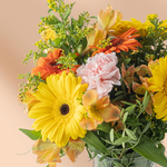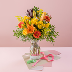 Bursting with vibrant orange and cheerful yellow blooms, this radiant arrangement brings warmth and joy to any occasion. It’s the perfect gift to lift spirits, celebrate special moments, or simply send a burst of sunshine to someone you care about.