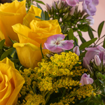 This radiant arrangement, featuring cheerful yellow and soft purple tones, brings warmth and happiness to any recipient - it’s the perfect way to brighten someone’s day and make them feel truly special.