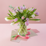 Say it with tulips! Our Mixed Tulips bouquet is a fresh, feel-good bundle of soft pink and crisp white blooms, paired with lush green foliage for that just-picked look. Simple, elegant and full of springtime charm, they’re guaranteed to brighten her day in an instant.