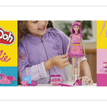 1 Pre-Made Play-Doh Pattern Sheet: The Pre-Made Sheet is 68 grams of flattened Play-Doh modelling compound that looks like pretend fabric with fun designs to make doll fashions (contains wheat).