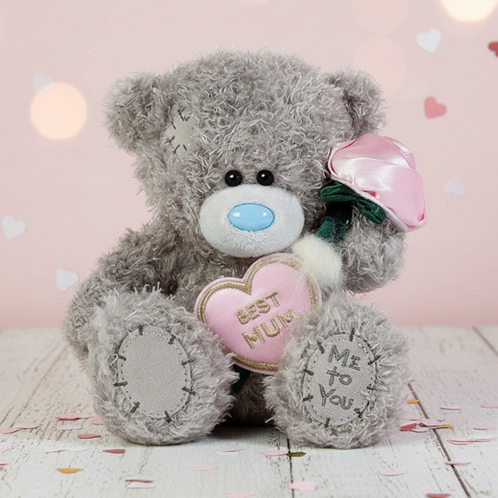Make Mum’s day extra special with this adorable Tatty Teddy! This cuddly cutie holds a flower and a heart-shaped plaque that says ‘Best Mum’, with original Me to You artwork and the sweet message ‘With love from Me to You’.