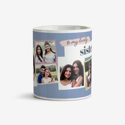 Simple Loveheart Design Six Photo Upload To My Lovely Sister Mug