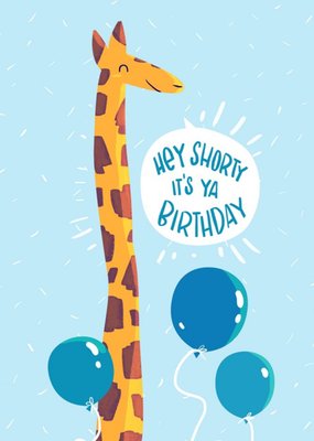 Illustration Of A Giraffe With Balloon On An Blue Background Hey Shorty Birthday Card