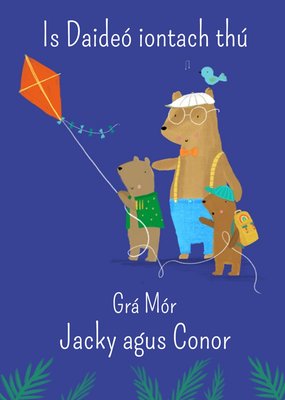 Colette Barker Illustration Dad Bears Irish Language Birthday Card