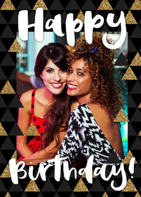 Glittered Pyramids Happy Birthday Photo Card