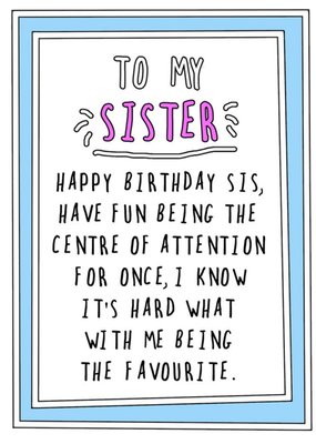 Funny Cheeky Happy Birthday Sis Have Fun Being The Centre Of Attention Card