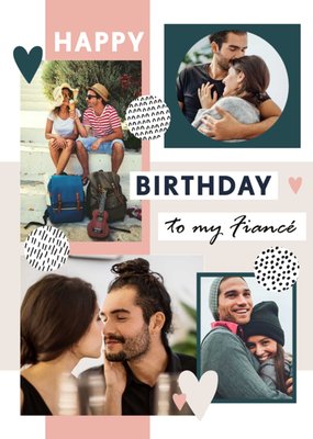Photo Collage With Geometric Shapes Fiancé's Photo Upload Birthday Card
