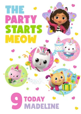 Gally's Dollhouse The Party Starts Meow Personalise Age Birthday Card