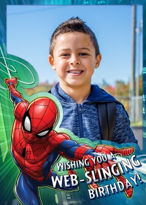 Marvel Spiderman Web-Slinging Photo Upload Birthday Card