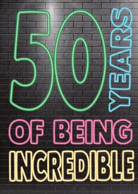 Circular Photo Frame With Stylish Typography And Stars Photo Upload Fiftieth Birthday Card