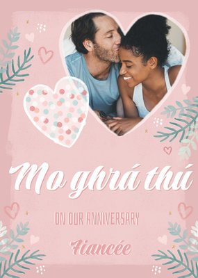 Irish Pink Illustrated Floral Photo Upload Anniversary Card