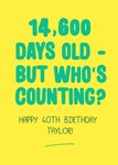 14,600 Days Old Funny Birthday Card
