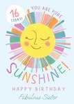 16 Today You Are Pure Sunshine Fabulous Sister Birthday Card