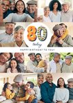 A modern, sentimental design featuring a centralised 80th Birthday message on a white background, surrounded by nine photo upload frames.