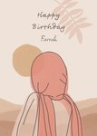 Abstract Illustration Lady In Headress Looking At a Sunset Personalised Birthday Card