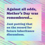 "Against all odds, Mother's Day was remembered... Just putting that on the record for future inheritance discussions."