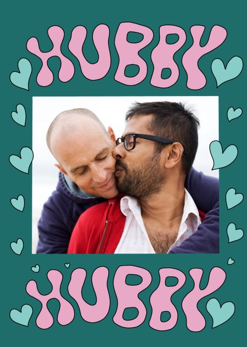 Aleisha Earp Green Illustrated Hearts Photo Frame Hubby Birthday Card