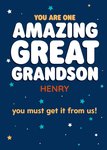 "You Are One Amazing Great Grandson Henry. You Must Get It From Us." Name can be customised.