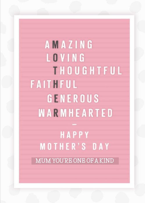 Amazing Loving Thoughtful Faithful Generous Warm Hearted Mother Pin Board Sentimental Mothers Day Card