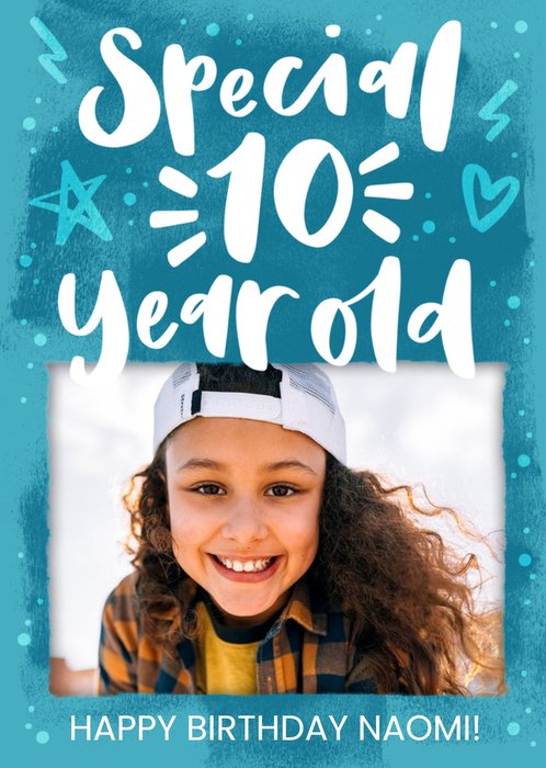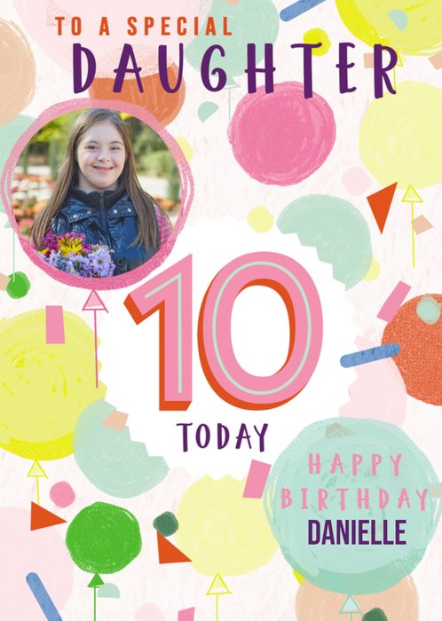 Angela Chick Illustrated Love Hearts Granddaughter 10th Birthday Photo Upload Card