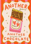 "Another year, another excuse for chocolate." The chocolate bar wrapper reads: 'life is sweet.'