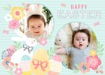 Aqua Striped Egg And Flower Happy Easter Photo Card
