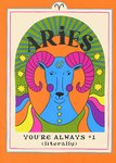 A bold, colourful Aries birthday card with a retro ram illustration and astrological symbols. Perfect for astrology lovers who like to stand out.