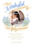 "To a wonderful granddaughter on her First Holy Communion as Jesus stands beside you, to listen as you pray, may he protect and guide you each and everyday March 12th 2025".