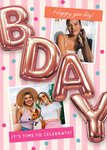 Bday Rose Gold Balloon Letters Photo Upload Birthday Card