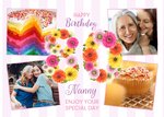 Front of card: Beautiful illustration of the number 80 made out of flowers, with pink and orange text underneath that reads: "Wishing You A Very Happy 80th Birthday Mother". A photo upload frame is at the top of the card Back of card: Studio Sundae Ivy Cottage logo