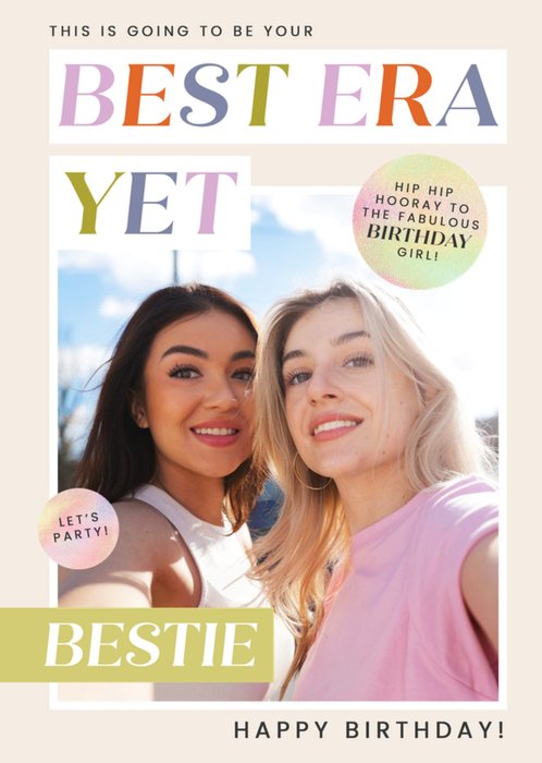 "this is going to be your best era yet", "hip hooray to the fabulous birthday girl!", "let's party!", and "bestie happy birthday!".