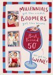 “Millennials get the credit. Boomers get the blame. Best friend 50. We get the wine!”