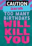 Big Bold Funny Too Many Birthdays Will Kill You Typography Birthday Card