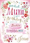Birthday Card - Mum - Loveliest Mum - Beautiful - Thoughtful - Wise - Floral