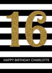Black And White Stripes Personalised Happy 16th Birthday Card