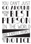 "You can't just go around being the best person in the world and expect people not to notice".