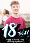 The card reads:"18 today, happy birthday to my amazing boyfriend". happy birthday to my amazing boyfriend is editable.
