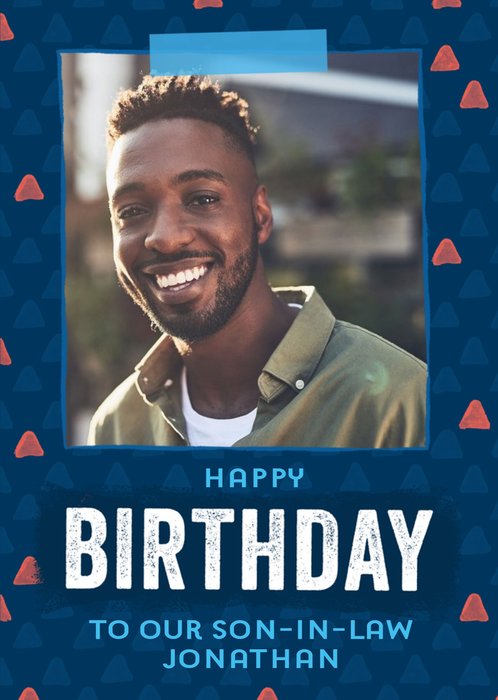 Blue Patterned Photo Upload Birthday Card