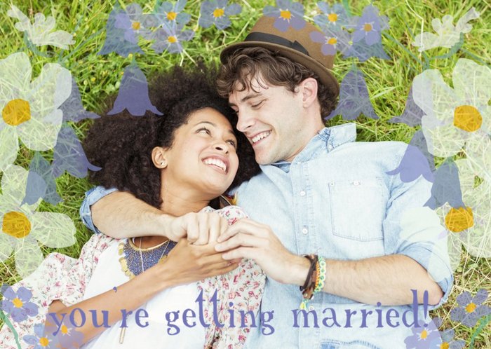 Bluebells And White Flowers Personalised Photo Upload Wedding Day Card