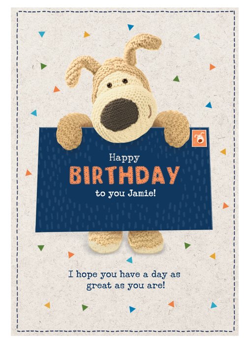 Front of card: Featuring Boofle standing next to a direction sign.
