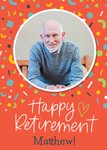 Bright Confetti Photo Upload Retirement Card