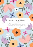 Bright floral design that sits on a pale blue background. There is a white panel in the centre of the card. This has the caption in it. The non editable part reads Brysia Wella, followed by the editable recipient's name.