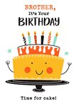 Bright Fun Illustration Of A Birthday Cake. Brother It's Time For Cake Card